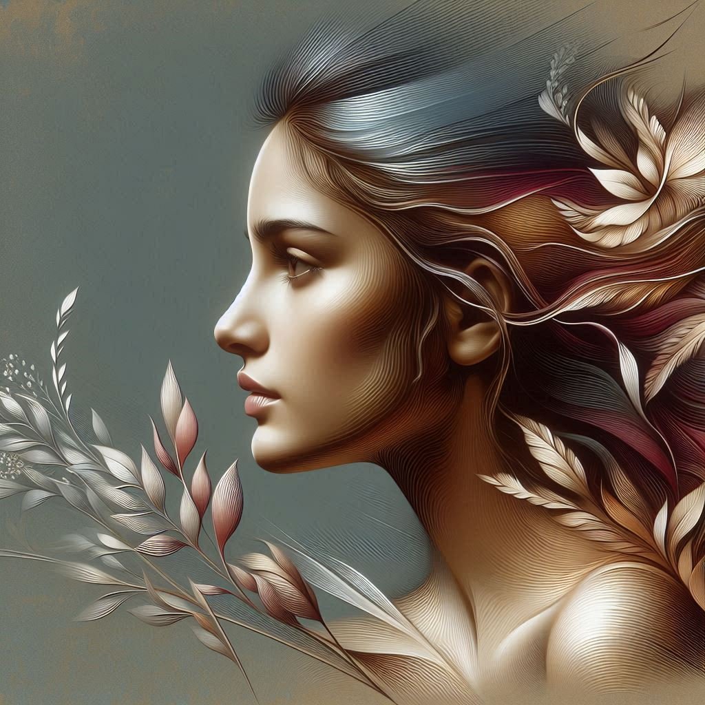 eine meisterhafte Darstellung von Lea, die sich auf ihr fesselndes Profil konzentriert und Eleganz, Empathie und Inspiration verkörpert, entworfen, um zu überraschen